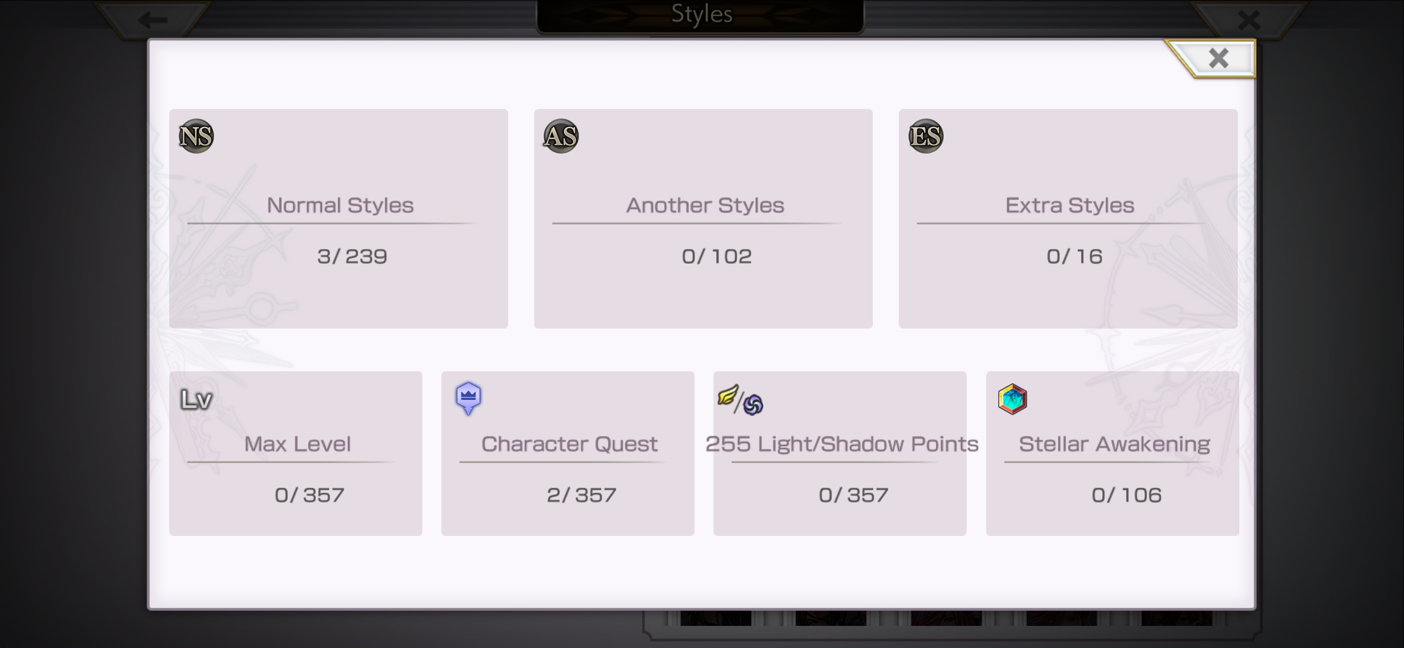 Players may confirm character encounters and statuses per Style. - Adjusted the "Switch" option, and added "Descending Order" to the display options.