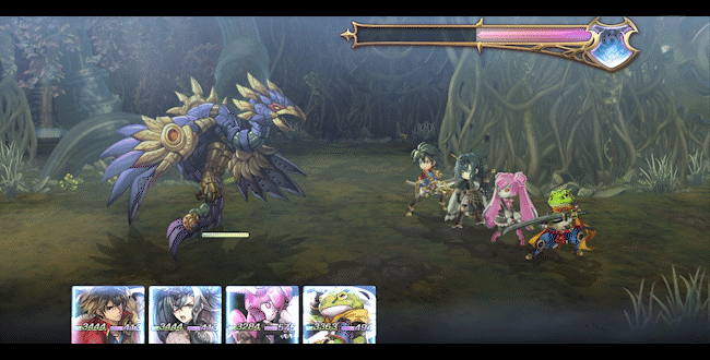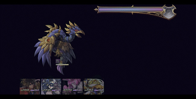 Preemptive all-enemy water slash attack (M) Guaranteed critical Applies the following effects to target: Stun [Additional Effect] Within the first 3 turns of battle, strength increased (20x) and Consumes 0 MP |