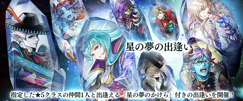 「星の夢の出逢い」では、10人との出逢いの後に★5クラスの1人と出逢うことができる「星の夢のかけら」が手に入ります