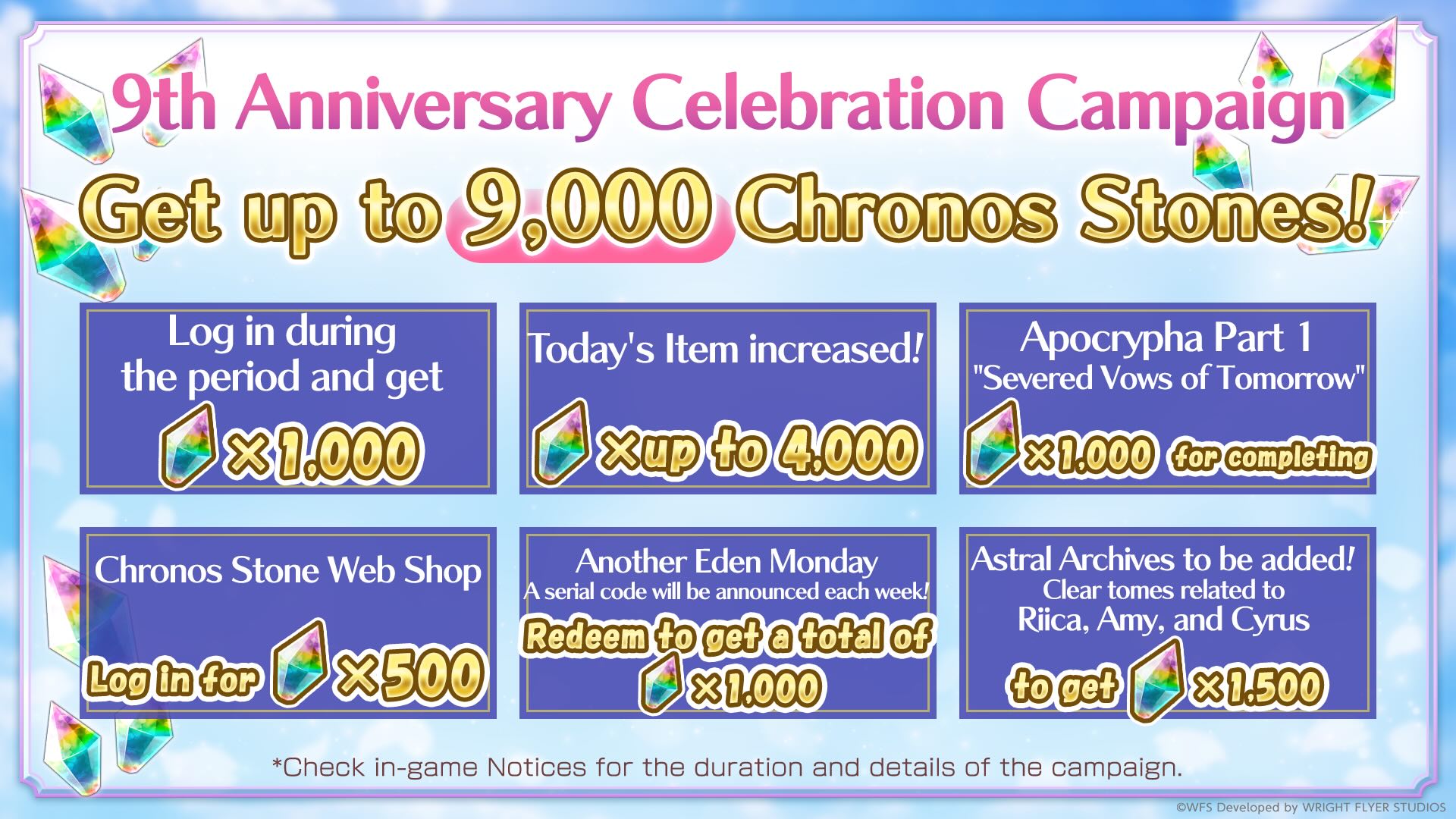 ■We're holding a campaign for the Ninth Anniversary! Get up to 9,000 Chronos Stones!